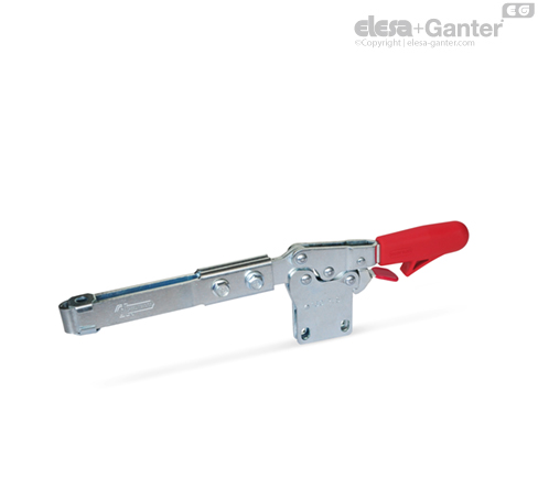 Stezanje funkcioniše na principu kolenaste opruge, stezna poluga i stezni krak se pomeraju u suprotnom smeru. Niska konstrukciona visina u položaju stezanja takođe karakteriše ove stege.