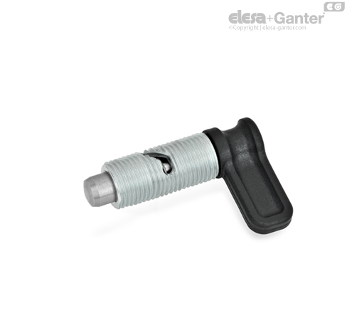 Zakrivljeni klipovi za zabravljivanje GN 712 se koriste ako klip za blokiranje određeno vreme Okretanjem klipa za 90° odn. 120° suprotno od kretanja kazaljki na satu. Klip za blokiranje se uvlači preko vodeće krive. Klip za blokiranje se uvlači preko vodeće krive.