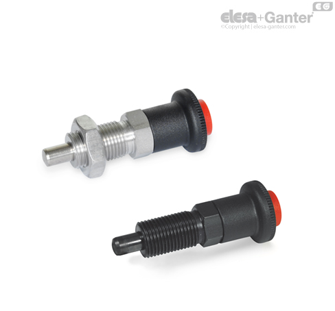Vijak graničnici GN 414 sa sigurnosnom funkcijom koriste se za sprečavanje slučajnog, nepromišljenog uvlačenja klipa za blokiranje. U tu svrhu, postojeći klip za blokiranje je zaključan i može se otključati za povlačenje samo aksijalnim pritiskom na crveno, sigurnosno pritisno dugme.