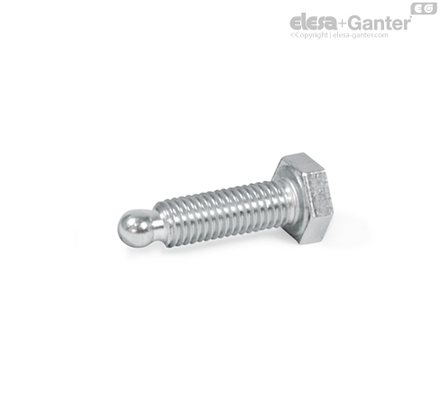 Vijci sa šestougaonom glavom od nerđajućeg čelika GN 933.5, izvedbe ZK, imaju kuglični zaglavnik čiji je prečnik d4 manji od prečnika jezgra d1 navoja i stoga su pogodni za prihvat potisnih elemenata GN 631 / GN 631.5 , koji ne spadaju u obim isporuke.