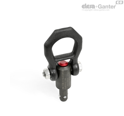 Zglobni transportni vijci GN 1130 predstavljaju noseće elemente koji su brzi i jednostavni za upotrebu. Pritiskom na crveno aluminijumsko dugme, oslobađa se bravica kugli za zaključavanje i transportni vijak može da se izvadi iz prihvatnog otvora ili umetne u njega. Okovi mogu da se zakrenu za min. 180°, pri čemu osiguračka lamela štiti od nenamernog pomeranja. U zavinosti od pravca zatezanja, zglobni transportni vijak može nesmetano da se okreće u prihvatnom otvoru za 360°.