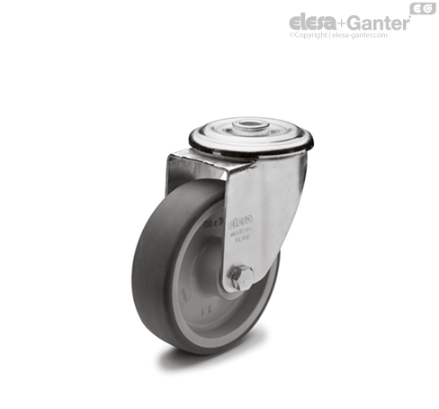 Kućište od pocinkovanog čeličnog lima je konstruisano za nosivost do 1800 N. Dvostruki kuglični ležaj i direktan kontakt između ploče i prstena kugličnog ležaja sa integrisanom čivijom garantuju odličnu upravljivost. Ne zahteva održavanje.