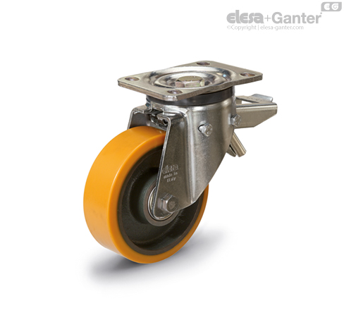 Pocinkovani čelični lim u žutoj boji. Dvostruki kuglični ležaj i direktan kontakt između ploče i prstena kugličnog ležaja sa integrisanom čivijom garantuju odličnu upravljivost. Održavanje nije potrebno. Kućište je dizajnirano za nosivost do 7500 N. Zbog velike nosivosti, točkić je pogodan za industrijske primene za teške uslove rada.