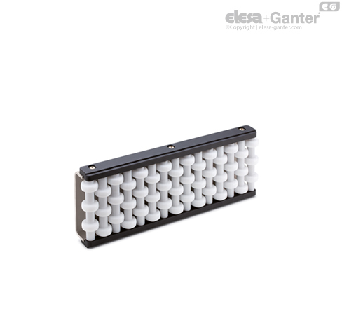 Oblikovan sa cilindričnom kontaktnom površinom, od plastike termoplastike (acetalna smola), beli.